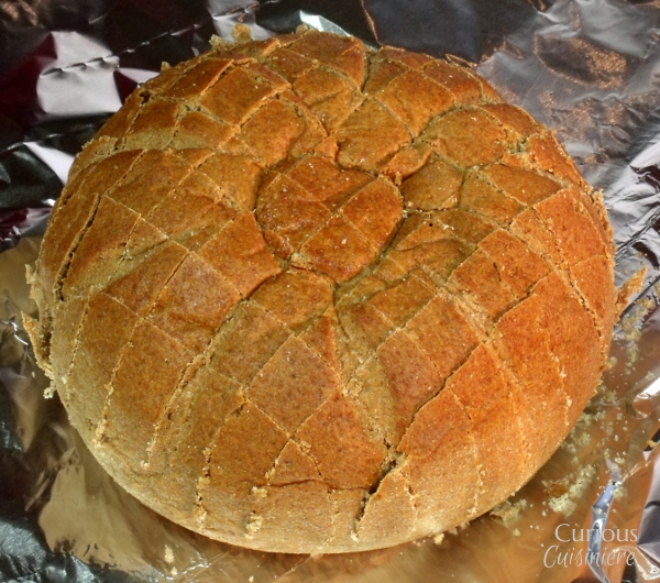 从烤箱中取出并剥离箔片,露出一块面包的顶部。返回烤箱10分钟烘烤。