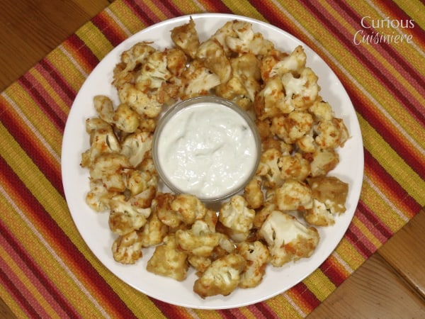 为了做这些蔬菜鸡翅,我们取了一口大小的花椰菜然后裹上一层脱脂牛奶糊。然后,放入烤箱进行烘烤,使花椰菜变甜,面糊变脆。gydF4y2Ba