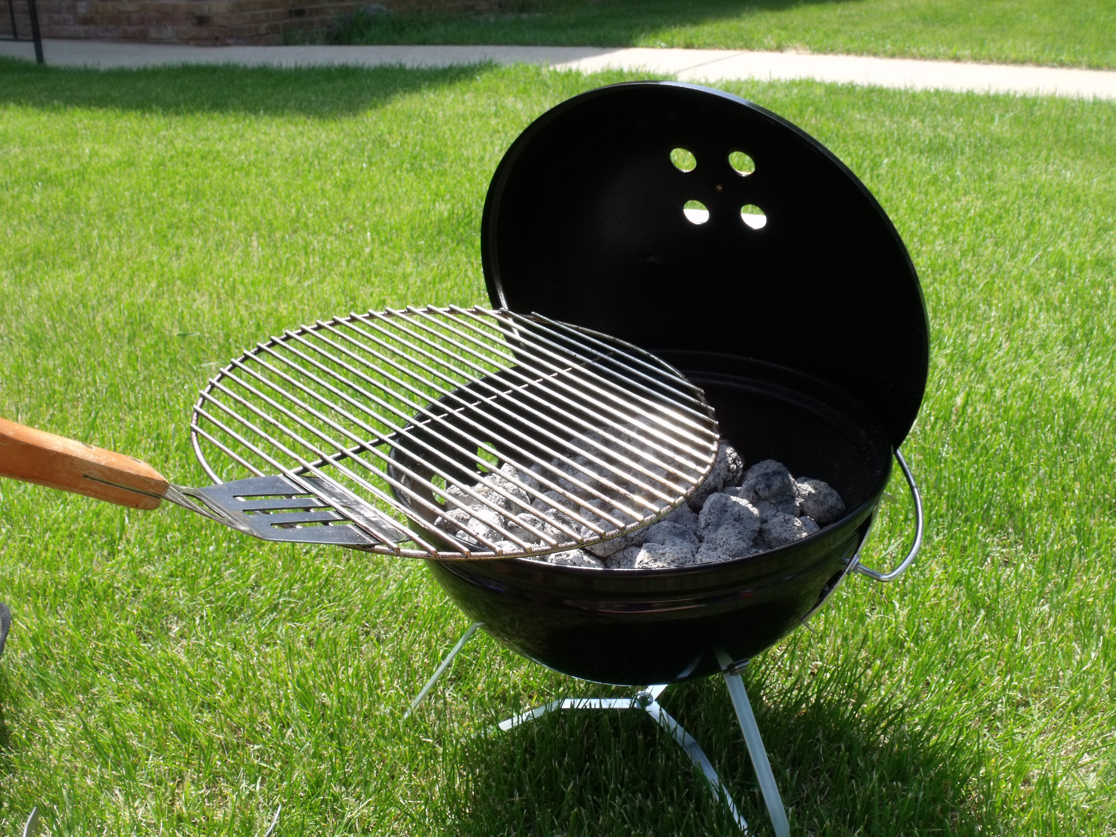 1.不要急着点火.正确的开始是关键。没有它,加热煤炭的时间可能会增加一倍。把你的煤球堆在一个紧密的土堆里,并浇上打火液。现在停止。克制住立刻点燃液体的冲动。火焰发出的那种令人满意的嗖嗖声是所有的液体在有机会加热木炭之前立即被燃烧掉。盖上盖子,等5分钟(是的,5分钟)让液体浸入。现在你可以点燃木炭,虽然火焰可能不那么大,但煤炭会加热得更快。