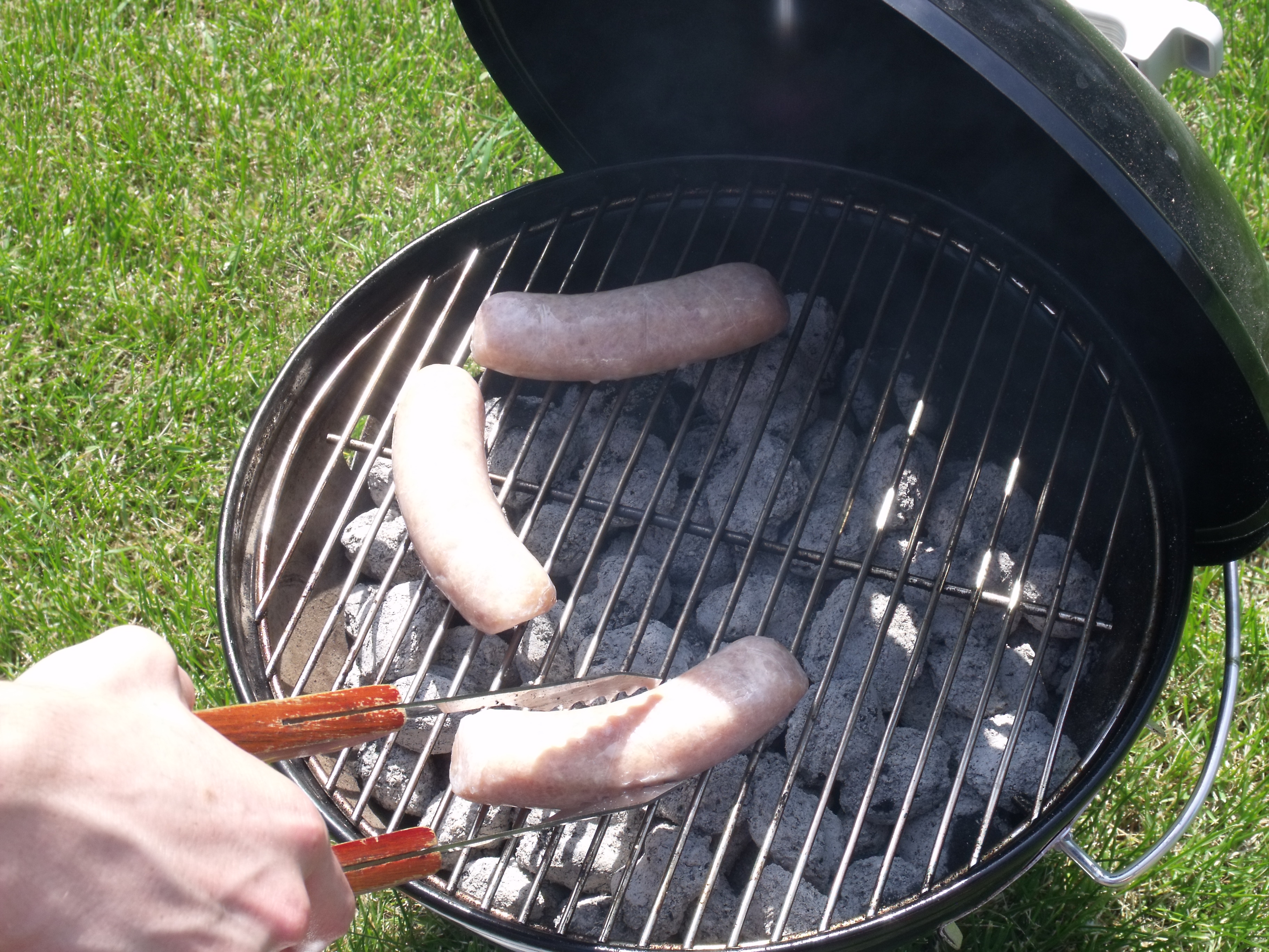 2.黑到白.打开所有的通风口,把烤架的盖子盖上,让煤块适当加热。当煤球变成灰白色时,就该开始了。