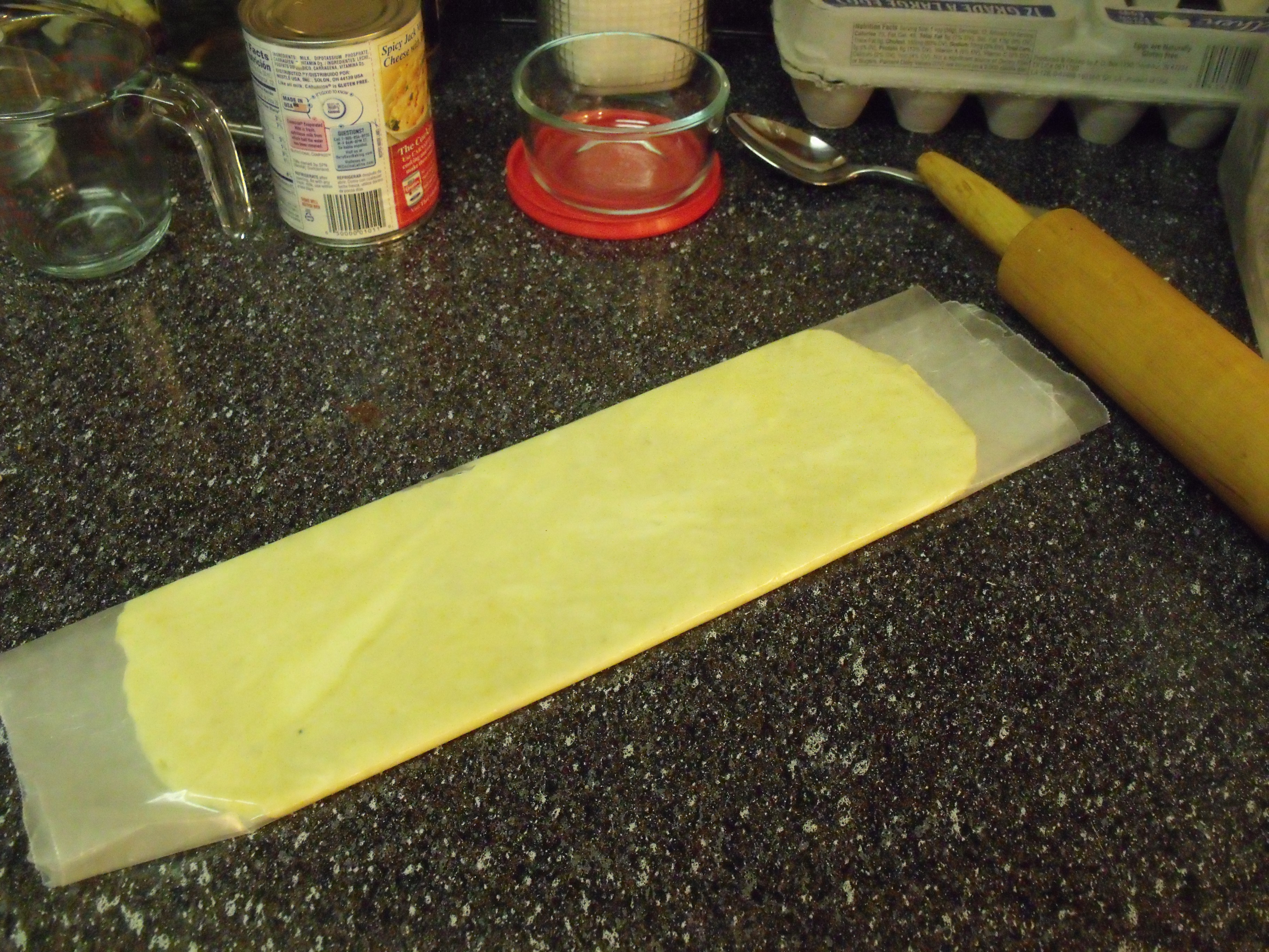 10.拿起每个楔子,一次一个,轻轻地把它从尖端拉伸到大约6-8英寸长。然后,从宽的一端开始,向末端滚动,轻轻地拉两边,随着你的移动而拉长。